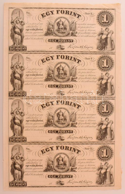 1852. 1Ft "Kossuth bankó" kitöltetlen "E","F","G","H" négyes ívben T:UNC,AU