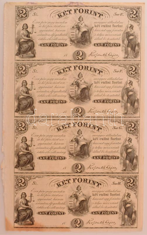 1852. 2Ft "Kossuth bankó" kitöltetlen "E","F","G","H" négyes ívben T:UNC,AU fo.