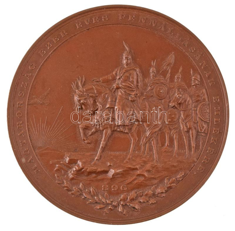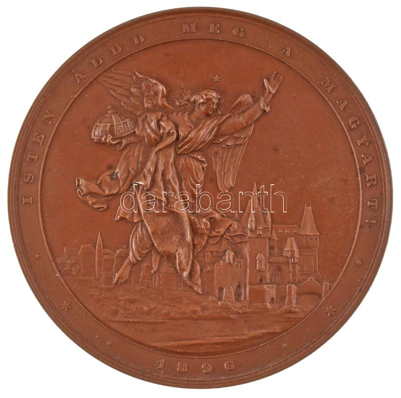 Hungary 1896. "1000th anniversary of Hungary - 896 / God, bless the Hungarians! - 1896" double sided bronze medallion in modern case (80mm) C:UNC,AU patina