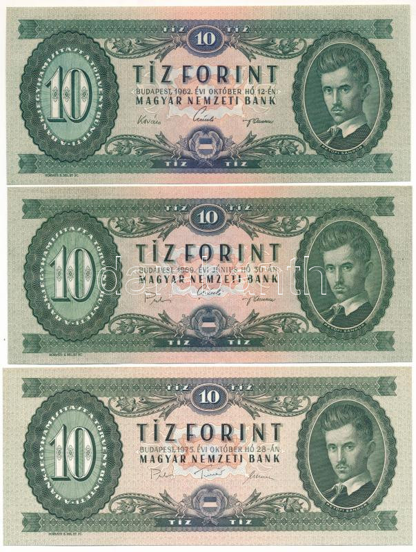 Hungary 1962. 10 Forint + 1969. 10 Forint + 1975. 10 Forint C:UNC,AU