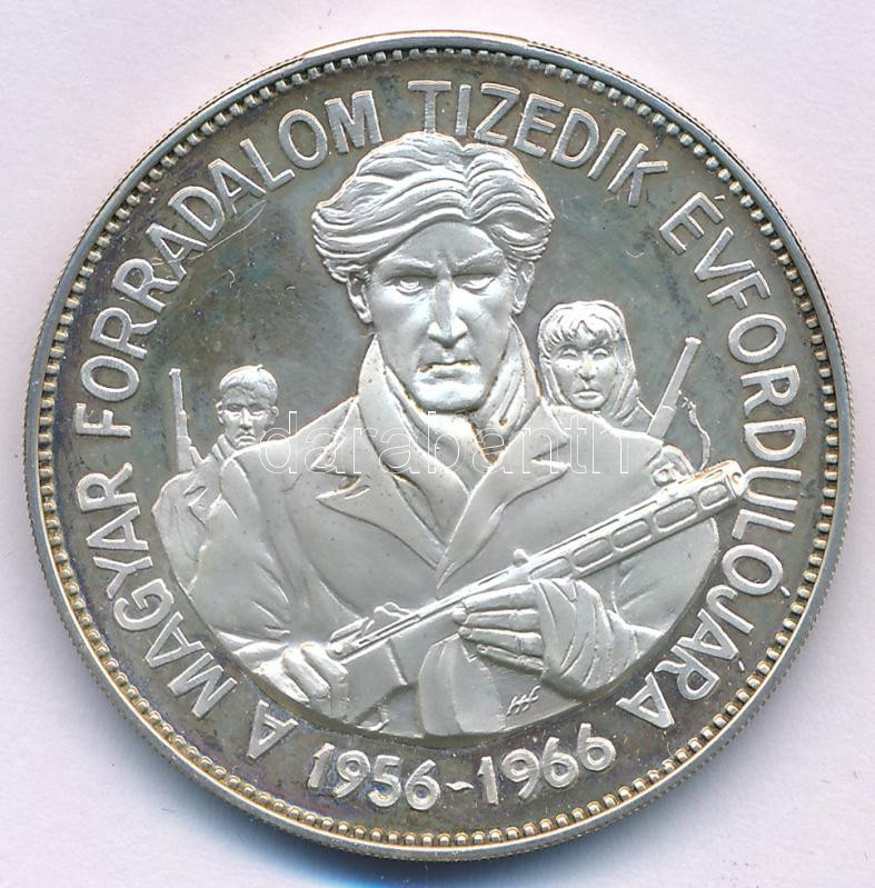 1966. "A Magyar Forradalom Tizedik Évfordulójára 1956-1966 / A Magyar Bizottság Felhatalmazásából - ESSAI" Ag próbaveret emlékérem, peremén sorszámozott "187"(22,75g/38mm) T:AU (PP) / Hungary 1966. "Commemorating the tenth Anniversary of the Hungarian Revolution 1956-1966 / Authorized by the Hungarian Committe - ESSAI" Ag trial commemorative medal, numbered on edge '187" (22,75g/38mm) C:AU (PP)