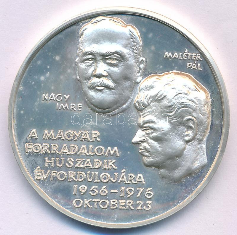 1976. "A Magyar Forradalom évfordulójára - Nagy Imre, Maléter Pál / In honour to the Hungarian Revolution Oktober 23. 1956" peremen jelzett Ag emlékérem (22,60g/0.999/38mm) T:AU (PP)
