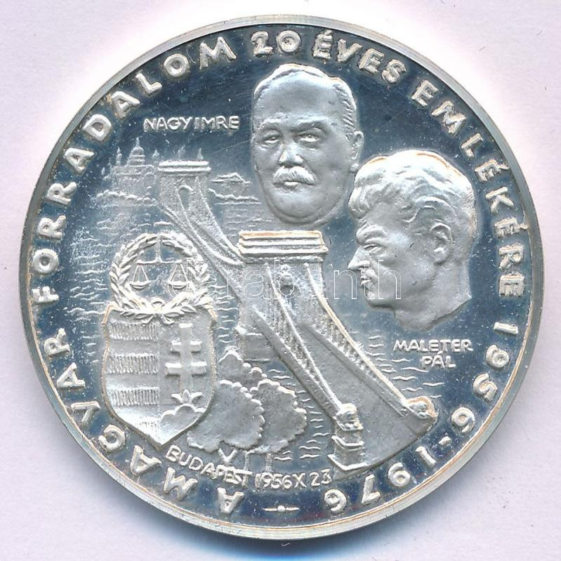 1976. "A magyar forradalom 20 éves évfordulójára" Ag emlékérem (23,56g/0.925/38mm) T:AU (PP) Hungary 1976. "For the 20th Anniversary of the Revolution of 1956 in Hungary" Ag commemorative medallion (23,56g/0.925/38mm) C:AU (PP)
