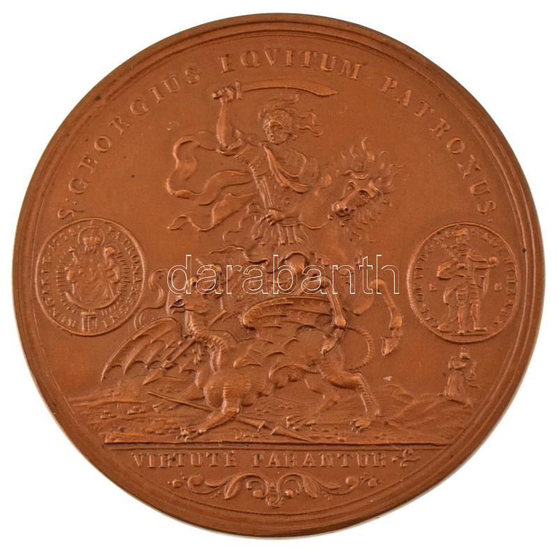 Austria 1914. "Official restrike of 40 Ducat St. George medal of Charles VI Holy Roman Empreror from 1738" bronze commemorative medallion with maker's mark "HMA (Hauptmünzamt) 1914". "S GEORGIUS EQVITUM PATRONUS / IN TEMPESTATE SECURITAS / AMORIS PRAEMIUM" (60mm) C:UNC