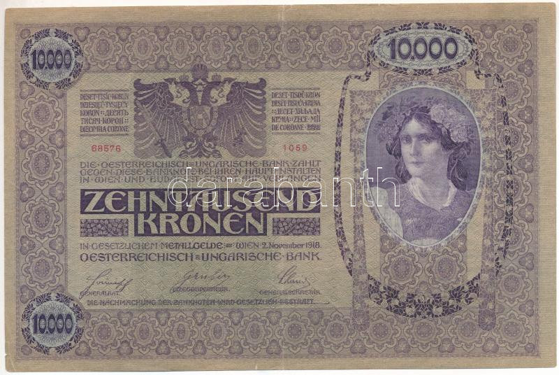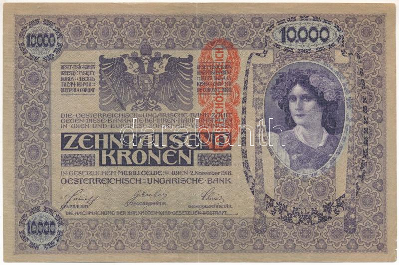 Ausztria 1918. 10.000K mindkét oldala német, függőleges, piros "DEUTSCHÖSTERREICH" felülbélyegzéssel T:F szép papír
