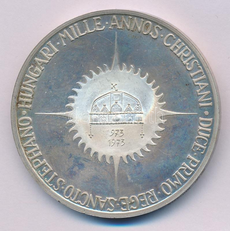Kanada 1973. "Mindszenty József" peremen jelzett, számozott Ag emlékérem "000074" (51mm) T:AU (PP) patina Canada 1973. "Jos. Card. Mindszenty Primas : Hungariae / Mille Annos Christiani Duce Primo Rege Sancto Stephano Hungari" on the edge hallmarked, numbered commemorative medallion "000074" (51mm) C:AU (PP) patina