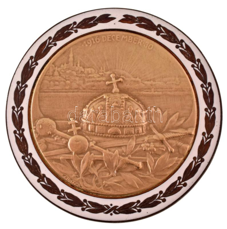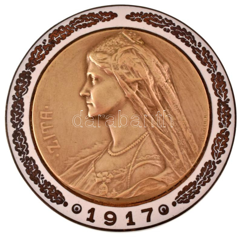 Osztrák-Magyar Monarchia 1917. "Zita / 1916. December 30" koronázási bronz emlékérem fehéren zománcozott Fe gyűrűben. Szign.: Katusch H. (92,71g/65mm) T:AU / Austro-Hungarian Monarchy 1917. "Zita / 30 December 1916" bronze commemorative coronaton medallion in white enamelled Fe ring. Sign.: Kautsch H. (92,71g/65mm) C:AU