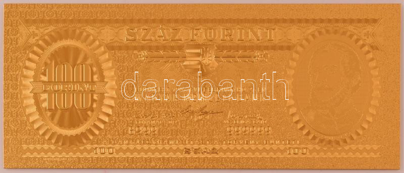 1947. 100Ft aranyozott bankjegy replika T:UNC https://www.darabanth.com/de/457-Fernauktion/457.0/Numismatik/Repliken-und-Falschungen~22/1947-100Ft-aranyozott-bankjegy-replika-TUNC~II3052089