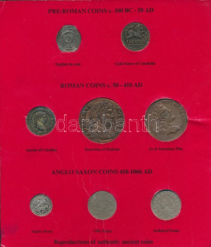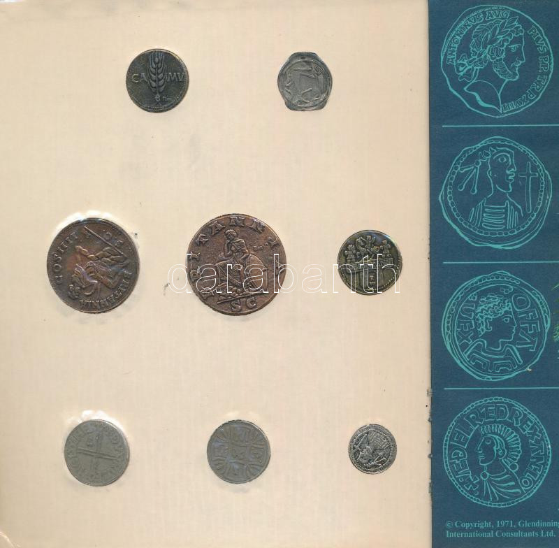 Nagy-Britannia DN "Az ókori Britannia érméi" 8db ókori érme fém replikája eredeti, használt csomagolásban T:UNC