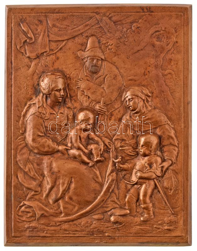 Vallási jelenetet ábrázoló öntött bronz plakett "IB 1659" jelzéssel, későbbi másolat (147x115mm) T:AU