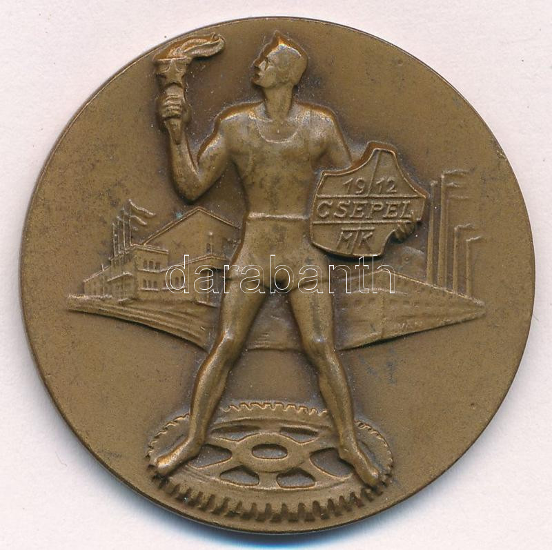 1950. "Csepel' Munkás Testedző Kör 1912" bronz díjérem, hátoldalán "Budapest 1950. évi bajnoksága IV. o. női egyes III" gravírozással (41mm) T:XF kis patina