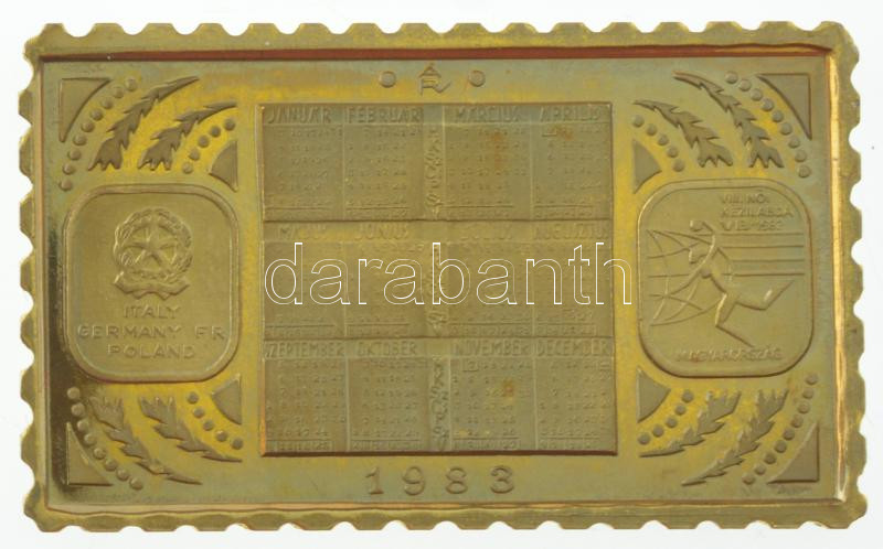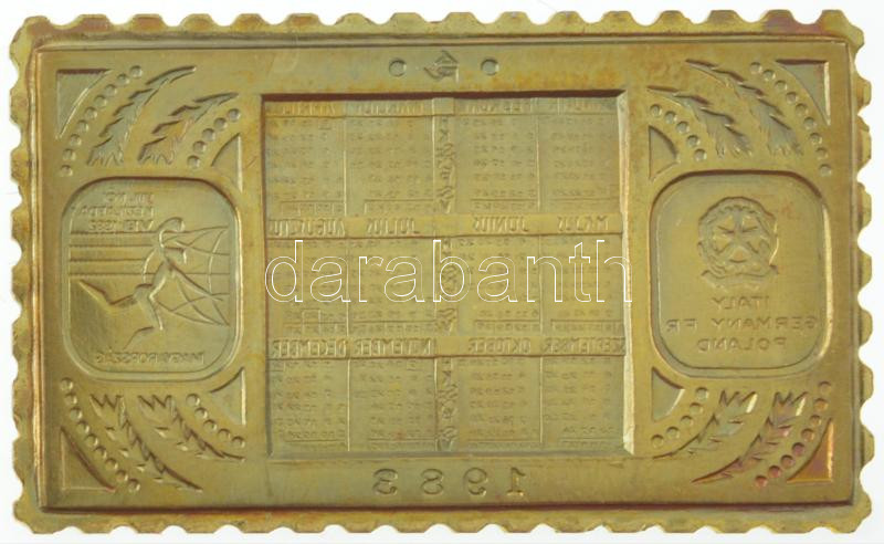 1983. "Naptár / Női Kézilabda VB" bronz bélyegérem eredeti, ... https://www.darabanth.com/de/457-Fernauktion/457.0/Numismatik/Sportpreise-und-Sportgedenkmedaillen~12/1983-Naptar-Noi-Kezilabda-VB-bronz-belyegerem-eredeti-de-serult-APV-tokban-22x37mm-T~II2983123