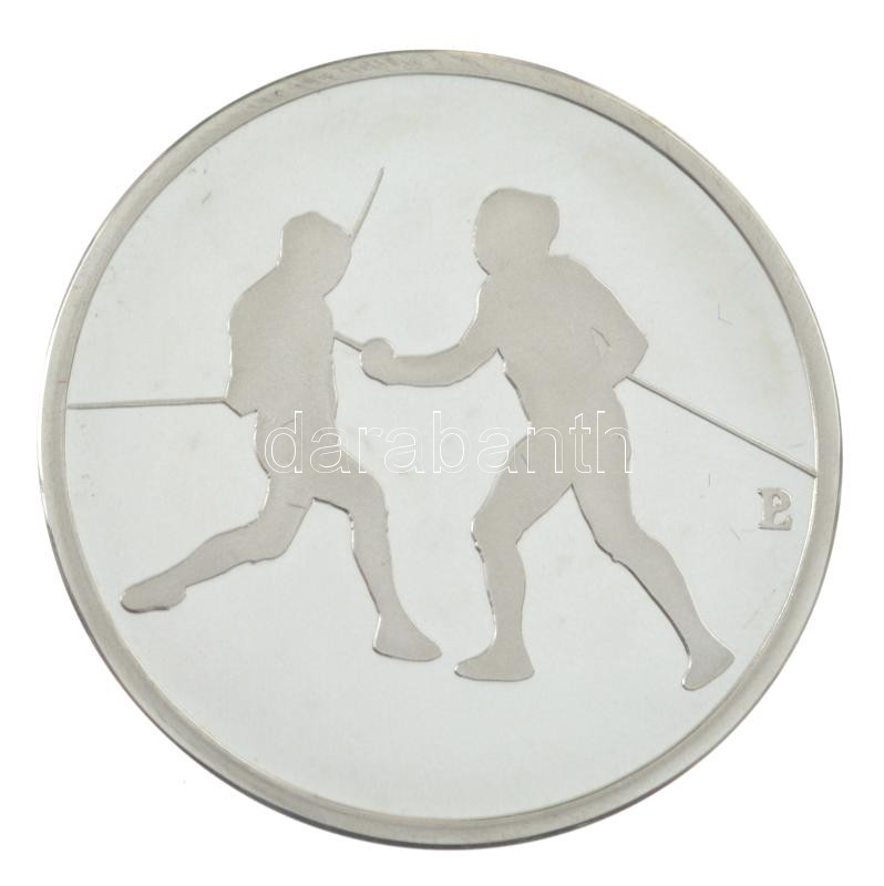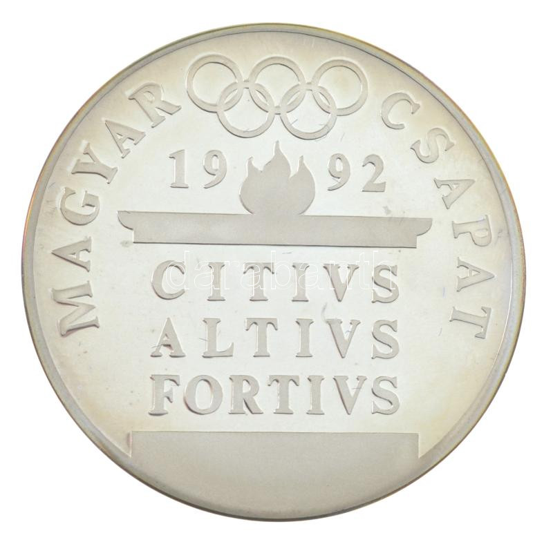 1990. "Magyar Csapat 1992 - CITIVS, ALTIVS, FORTIVS / Vívás" a Barcelonában rendezett nyári Olimpia alkalmából készült, jelzetlen Ag emlékérem kapszulában, sorszámozott "3219" tanúsítvánnyal, eredeti dísztokban. Szign.: Papp László (31,5g/0,925/42,5mm) T:PP apró karcok.