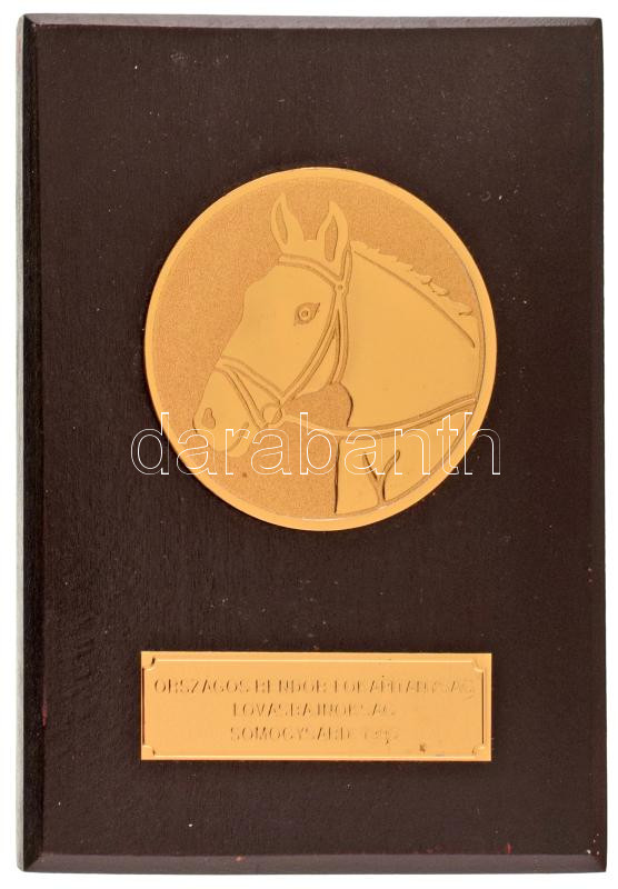 Beschreibung: 1995. "Országos Rendőrfőkapitányság Lovasbajnokság Somogysárd 1995" aranyozott lovasport emlékplakett fa talpon T:AU