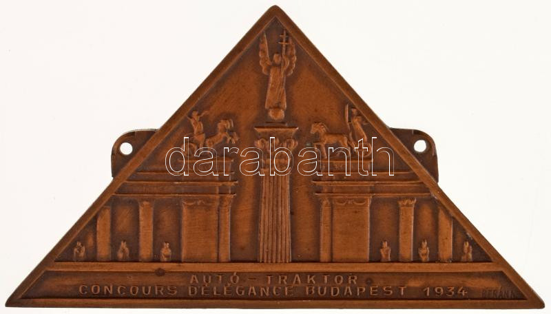 Berán Nándor (1889-1965) 1934. "Autó-Traktor Concours d'Élégance Budapest 1934" egyoldalas bronz jármű jelvény "Berán N. Budapest Döbrentei u. 2." gyártói jelzéssel (52x91mm) T:AU / Hungary 1934. "Autó-Traktor Concours d'Élégance Budapest 1934" one-sided bronze vehicle badge, with "Berán N. Budapest Döbrentei u. 2." maker's mark (52x91mm) C:AU
