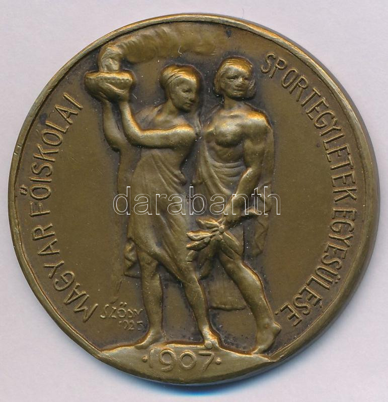 Sződy Szilárd (1878-1939) 1935. "Magyar Főiskolai Sportegyletek Egyesülése - 1907" egyoldalas bronz díjérem, "LUDVIG" gyártói jelzéssel, hátoldalán "1935 Húsvét" gravírozással (40mm) T:AU