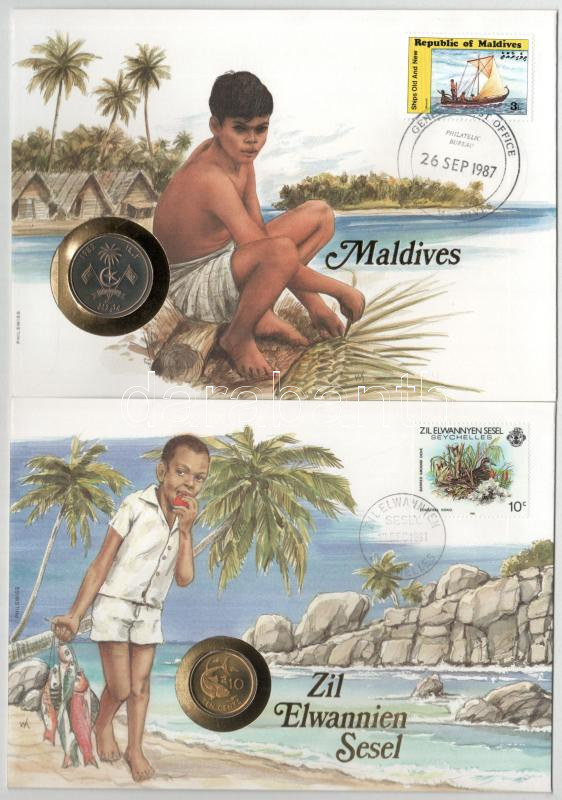 Beschreibung: 5xklf érmés boríték tétel, mind német nyelvű tájékoztatóval, benne: Indonézia, Ciprus, Antigua, Maldív-szigetek, Seychelle-szigetek