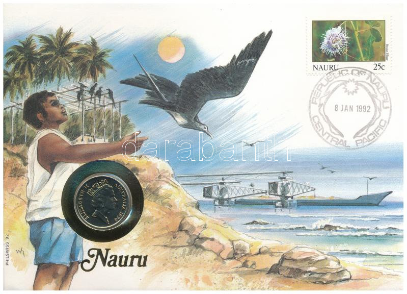 Ausztrália / Nauru 1990. 10c felbélyegzett borítékban, bélyegzéssel, német nyelvű leírással T:UNC Australia / Nauru 1990. 10 Cents coin in envelope with stamp and cancellation, with German description C:UNC