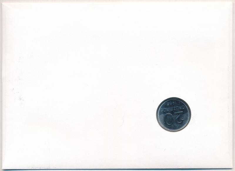 Brazil 1986. 20 Cruzerios steel in envelope with stamp, with German description C:AU