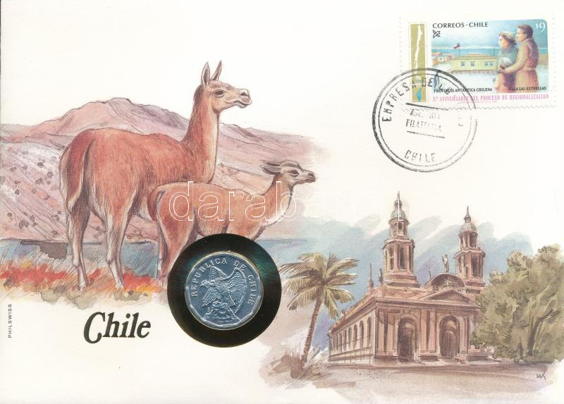 Chile 1979. 10c Al felbélyegzett borítékban, bélyegzéssel, német nyelvű leírással T:UNC Chile 1979. 10 Centavos Al in envelope with stamp, cancellation and a prospectus in german C:UNC