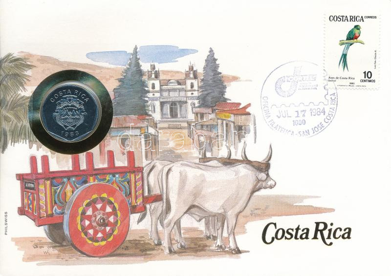 Costa Rica 1983. 5C acél felbélyegzett borítékban, bélyegzéssel, német nyelvű tájékoztatóval T:AU Costa Rica 1983. 5 Colones steel in envelope with stamp, cancellation and a prospectus in german C:AU