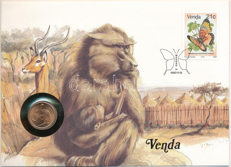 Dél-Afrikai Köztársaság / Venda 1990. 5c acél felbélyegzett borítékban, bélyegzéssel, német nyelvű tájékoztatóval T:AU South African Republic / Venda 1990. 5 Cents steel in envelope with stamp, cancellation and a prospectus in german C:AU