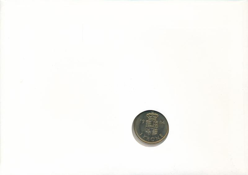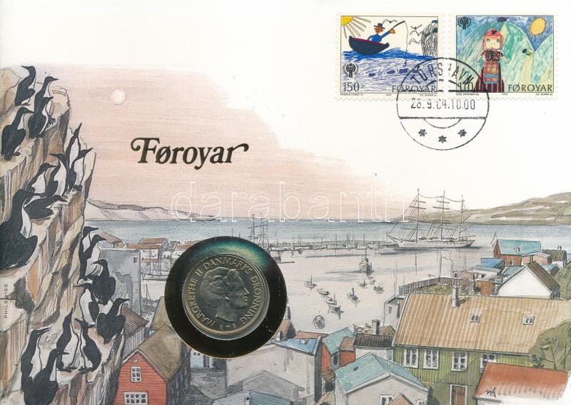 Feröer-szigetek 1984. 1Kr Cu-Ni felbélyegzett borítékban, bélyegzéssel, német nyelvű leírással T:1 Faeroe Islands 1984. 1 Krone Cu-Ni in envelope with stamp and cancellation, with German description C:UNC