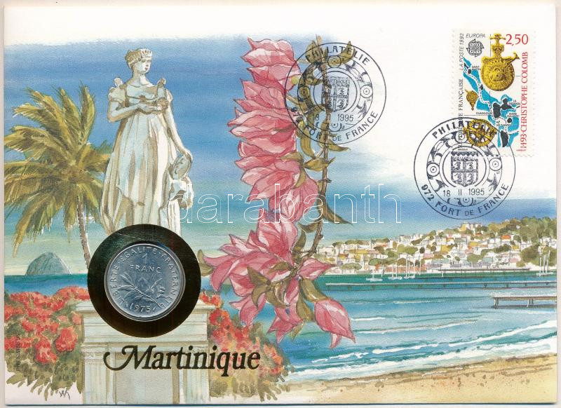 Franciaország / Martinique 1975. 1Fr felbélyegzett borítékban, bélyegzéssel, német nyelvű leírással T:XF France / Martinique 1975. 1 Franc in envelope with stamp and cancellation, with German description C:XF