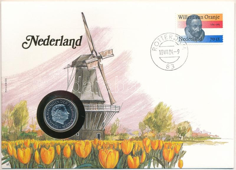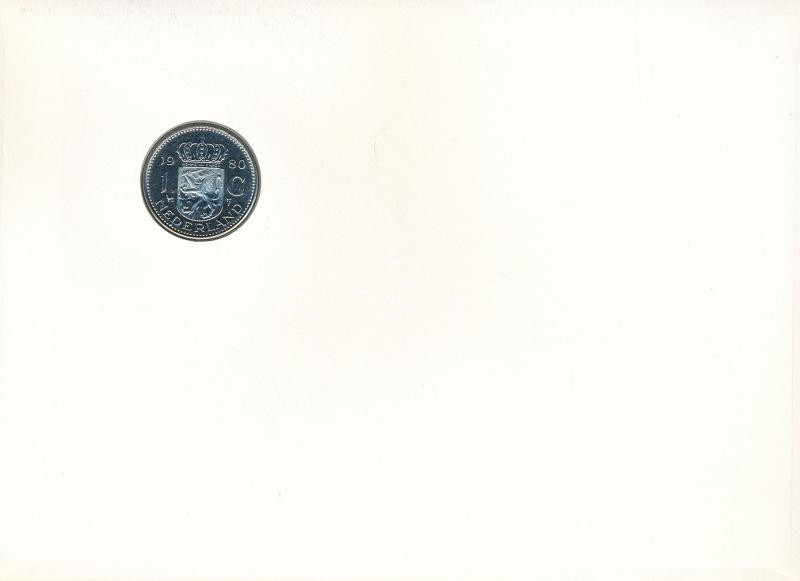 Hollandia 1980. 1G Ni érme felbélyegzett borítékban, bélyegzéssel, német nyelvű tájékoztatóval T:AU Netherlands 1980. 1 Gulden Ni coin in envelope with stamp, cancellation and a prospectus in german C:AU