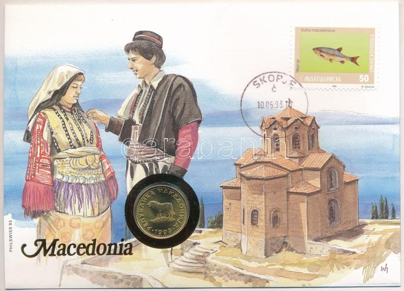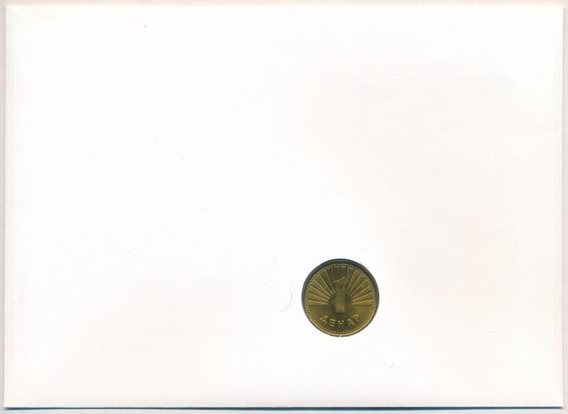 Macedónia 1993. 1D Cu-Ni felbélyegzett borítékban, bélyegzéssel, német nyelvű tájékoztatóval T:AU