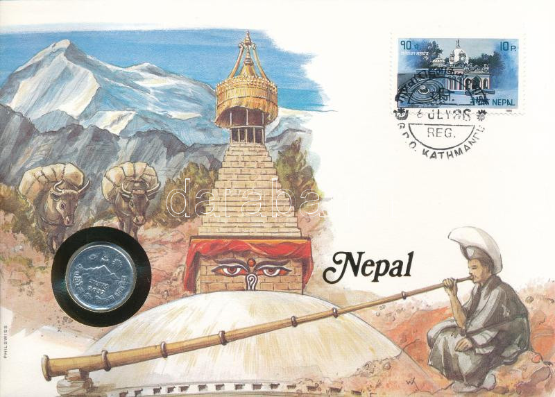 Nepal 1975. 5 Paisa in envelope with stamp and cancellation, with German description C:XF