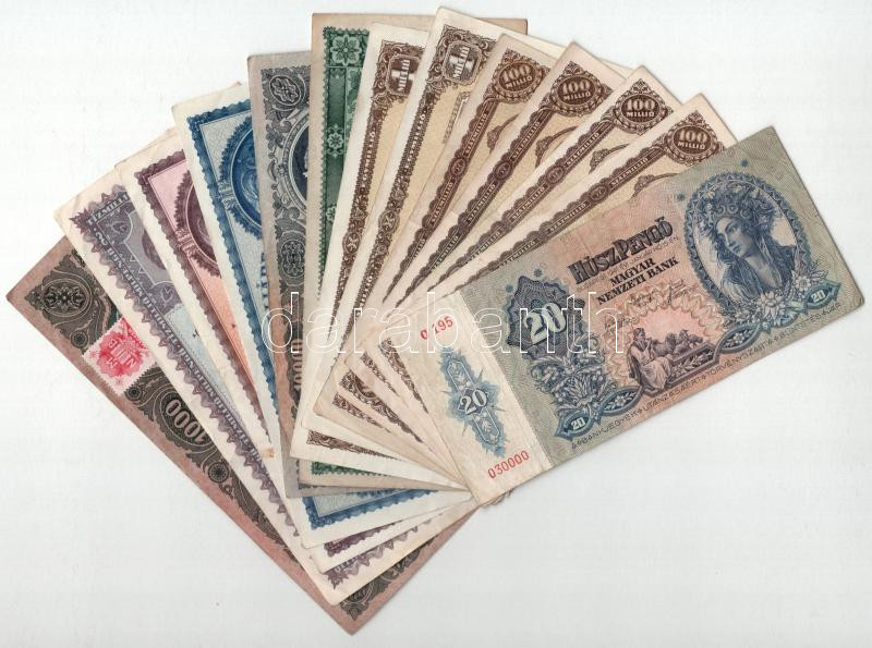 13db-os vegyes inflációs pengő bankjegy tétel T:F,VG https://www.darabanth.com/de/457-Fernauktion/457.0/Numismatik/Ungarische-Banknoten~8/13db-os-vegyes-inflacios-pengo-bankjegy-tetel-TF-VG~II3057286