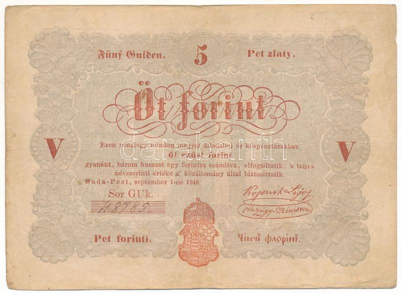Adamo G1... https://www.darabanth.com/de/457-Fernauktion/457.0/Numismatik/Ungarische-Banknoten~8/1848-5Ft-Kossuth-banko-vorosesbarna-nyomat-TF--Adamo-G109~II3001619