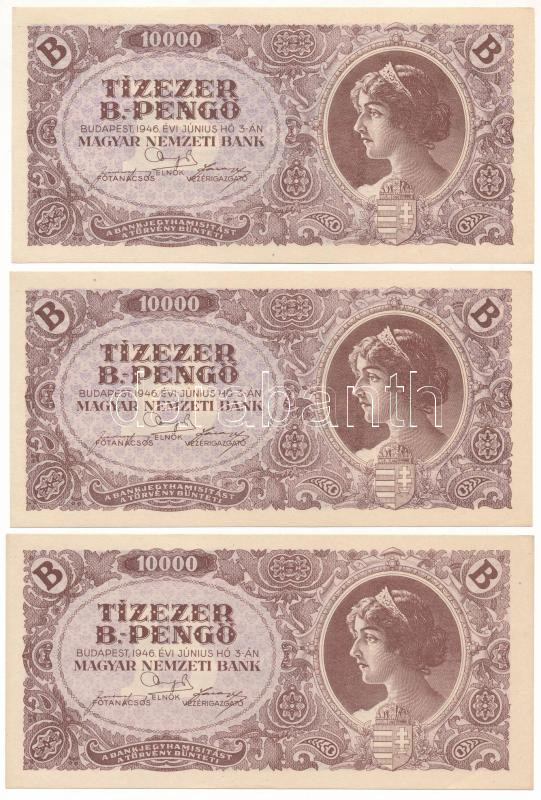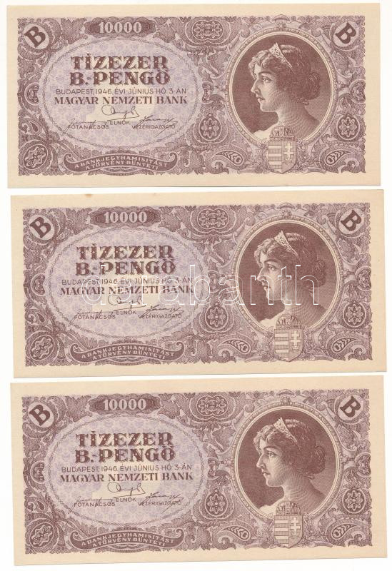1946. 10.000BP (10x) T:AU / Hungary 1946. 10.000 Bilpengő (10x) C:AU A... https://www.darabanth.com/de/457-Fernauktion/457.0/Numismatik/Ungarische-Banknoten~8/1946-10000BP-10x-TAU-Hungary-1946-10000-Bilpengo-10x-CAU-Adamo-P35~II3001210