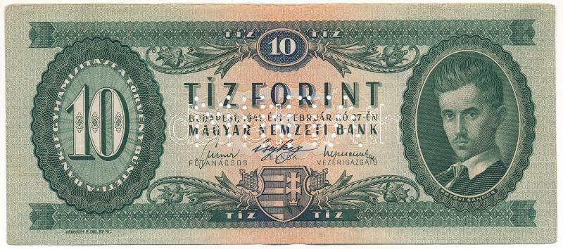 1947. 10Ft "A 793 013790" hamis "MINTA" perforáció... https://www.darabanth.com/de/457-Fernauktion/457.0/Numismatik/Ungarische-Banknoten~8/1947-10Ft-A-793-013790-hamis-MINTA-perforacioval-TF-Adamo-F2~II3054479