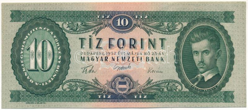 Hungary 1957. 10 Forint "A 582 066852" lightly slanted print C:VF