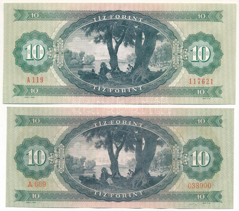 1969-1975. 10Ft (2xklf) T:UNC,AU https://www.darabanth.com/de/457-Fernauktion/457.0/Numismatik/Ungarische-Banknoten~8/1969-1975-10Ft-2xklf-TUNC-AU~II3059551