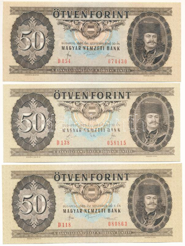 1980-1989. 50Ft (3xklf) T:UNC,AU https://www.darabanth.com/de/457-Fernauktion/457.0/Numismatik/Ungarische-Banknoten~8/1980-1989-50Ft-3xklf-TUNC-AU~II3059506