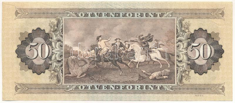 1986. 50Ft nyomdai papírráncokkal T:AU Adamo F24 https://www.darabanth.com/de/457-Fernauktion/457.0/Numismatik/Ungarische-Banknoten~8/1986-50Ft-nyomdai-papirrancokkal-TAU-Adamo-F24~II3060183