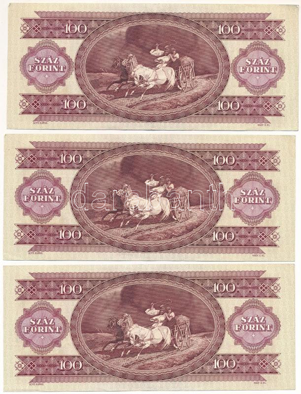 1992. 100Ft (3x) sorszámkövetők "B 415 018109 - B 415 018111"... https://www.darabanth.com/de/457-Fernauktion/457.0/Numismatik/Ungarische-Banknoten~8/1992-100Ft-3x-sorszamkovetok-B-415-018109-B-415-018111-TVF-F-szep-papir~II3059624