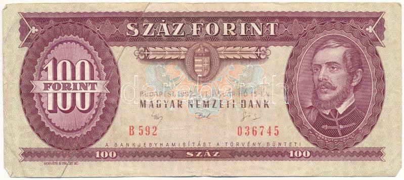 Beschreibung: 1992. 100Ft mindkét oldalon látványos nyomdahibával T:F Adamo F35