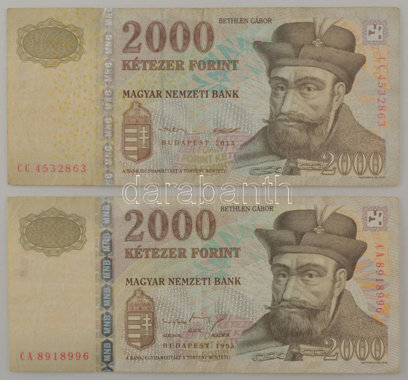 Beschreibung: 1998. 2000Ft "CA" + 2013. 2000Ft "CC" T:F