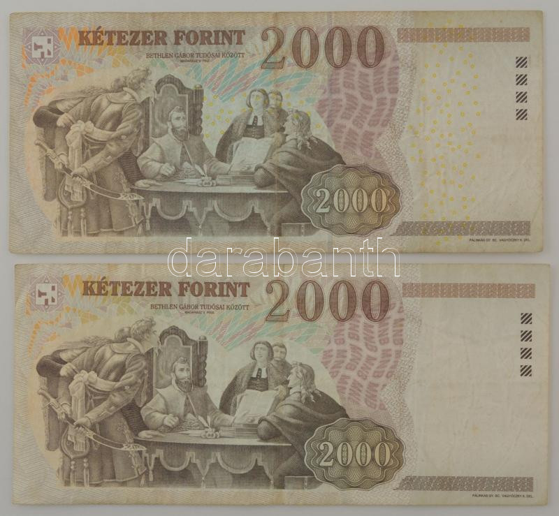 1998. 2000Ft "CA" + 2013. 2000Ft "CC" T:F https://www.darabanth.com/de/457-Fernauktion/457.0/Numismatik/Ungarische-Banknoten~8/1998-2000Ft-CA-plus-2013-2000Ft-CC-TF~II3035887