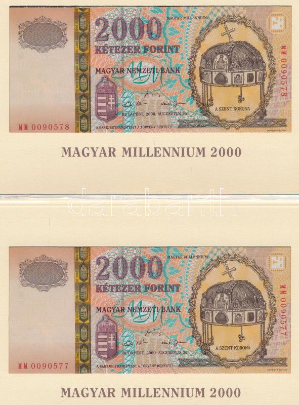 2000. 2000Ft (3x) "Millenium" eredeti, bontatlan díszcsomago... https://www.darabanth.com/de/457-Fernauktion/457.0/Numismatik/Ungarische-Banknoten~8/2000-2000Ft-3x-Millenium-eredeti-bontatlan-diszcsomagolasban-sorszamkovetok-MM-0090577-~II2997319