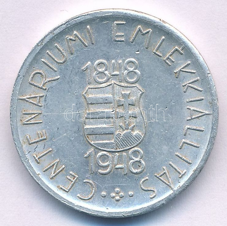 1948. "Magyar Dolgozók Érdeme / Centenáriumi Kiállítás 1848" Al emlékérem (29mm) T:AU,XF