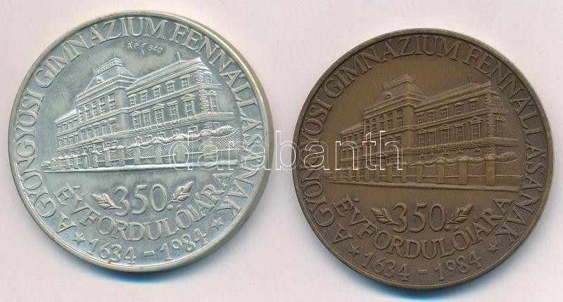 1984. "A Gyöngyösi Gimnázium fennállásának 350. évfordulójára" Ag és bronz emlékérem pár (34,79g/0.640/42,5mm) T:UNC,AU