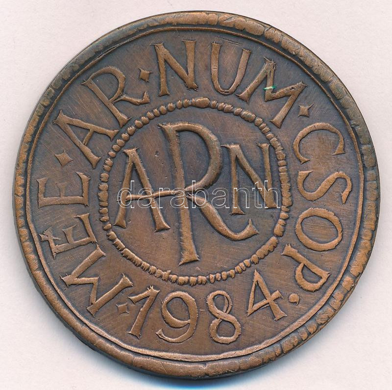 1984. "MÉE AR NUM CSOP" kétoldalas bronz emlékérem (51mm) T:... https://www.darabanth.com/de/457-Fernauktion/457.0/Numismatik/Ungarische-Gedenkmunzen-Plaketten~11/1984-MEE-AR-NUM-CSOP-ketoldalas-bronz-emlekerem-51mm-TAU-XF~II3035308