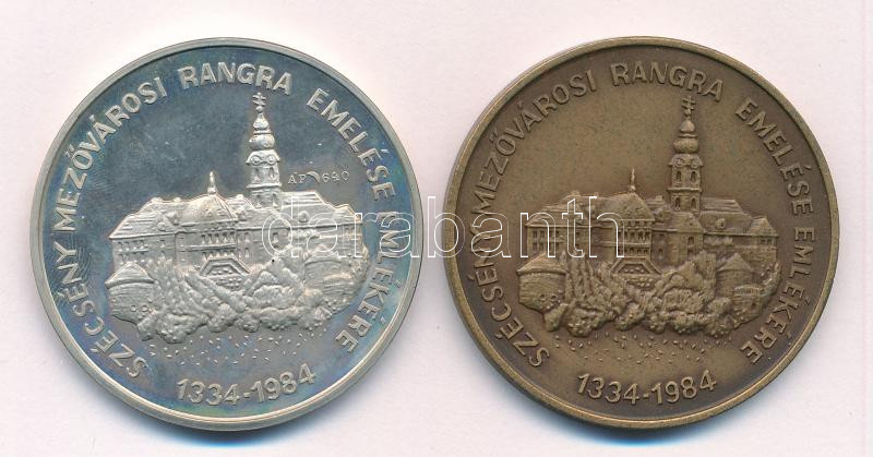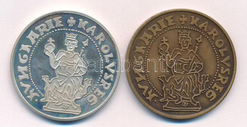 1984. "Szécsény mezővárosi rangra emelése emlékére 1334-1984 / Károly Róbert" kétoldalas Ag és bronz emlékérem pár (34,78g/0.640/42,5mm) T:UNC,AU (eredetileg PP)