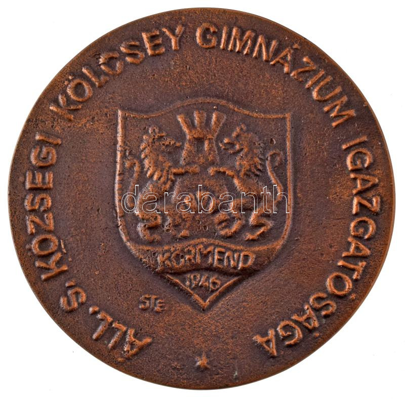 1996. "A körmendi Kölcsey Ferenc Gimnázium 50. évfordulója" ... https://www.darabanth.com/de/457-Fernauktion/457.0/Numismatik/Ungarische-Gedenkmunzen-Plaketten~11/1996-A-kormendi-Kolcsey-Ferenc-Gimnazium-50-evforduloja-ketoldalas-ontott-bronz-emlekC3~II3052267
