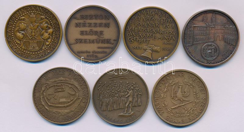 Beschreibung: 7xklf bronz érembÅ‘l álló tétel, közte: Bognár György (1944-) 1990. "MÉE Budapest / Nagy Imre a magyar nép mártÃrja" bronz emlékérem (42,5mm) + Nagy Lajos (1949-) 1986. "MÉE Szabolcs-Szatmár Megyei Szervezete / Bajcsy-Zsilinszky Endre 1886-1986" bronz emlékérem (42,5mm) + Tóth Sándor (1933-2019) 1985. "ZrÃnyi Miklós / 15 éves a MÉE Nagykanizsai csoportja 1970-1985" kétoldalas bronz emlékérem (42,5mm) T:UNC,AU patina